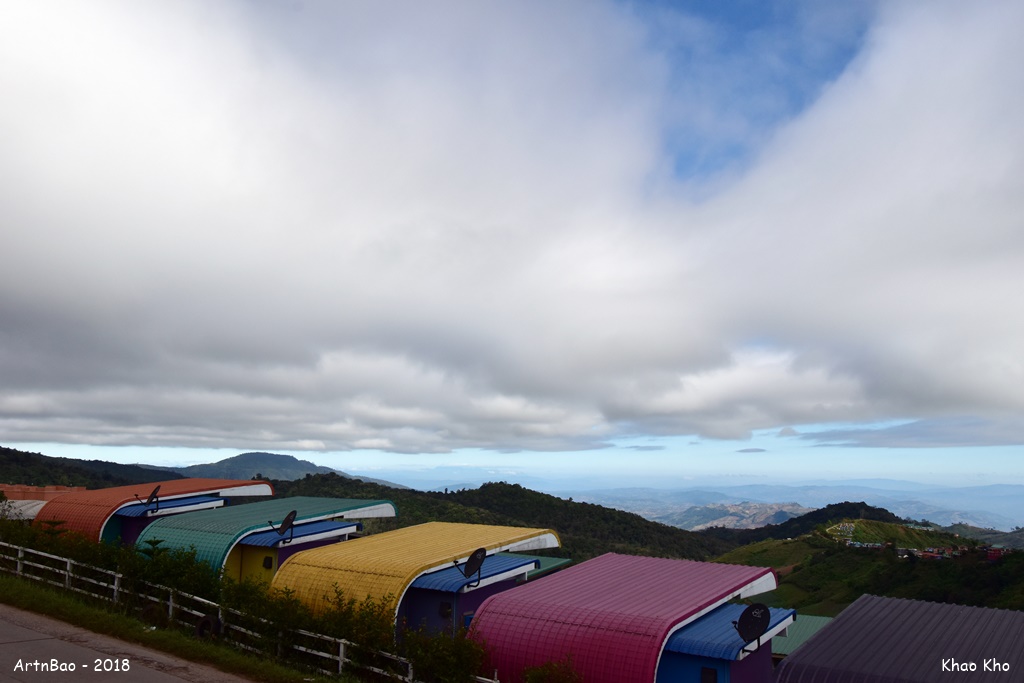 We walked up the slope, and the local markets filled both sides of the road near to the clock tower plaza. Many campers stay overnight at the tents compound.
