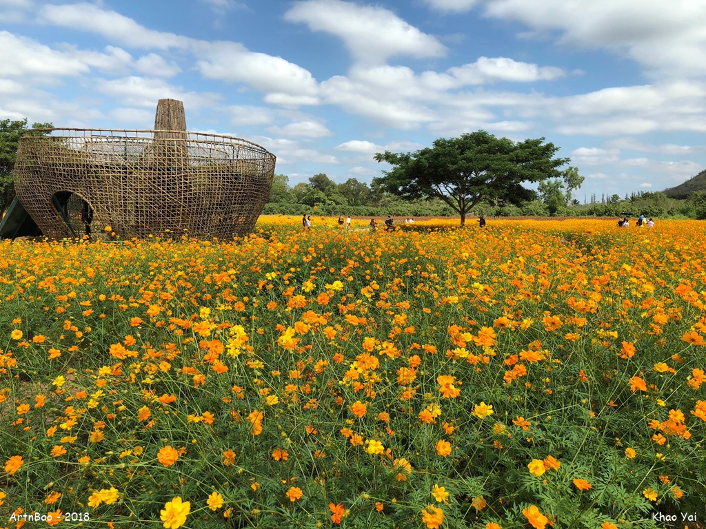The entrance fee costs 180 Baht/person. The farm occupied 600 rai of land. It also provides a free farm cart ride to bring visitors to various parts of the farm. The first stop is the pumpkin land, in which different sizes of pumpkins are displayed all over the field.