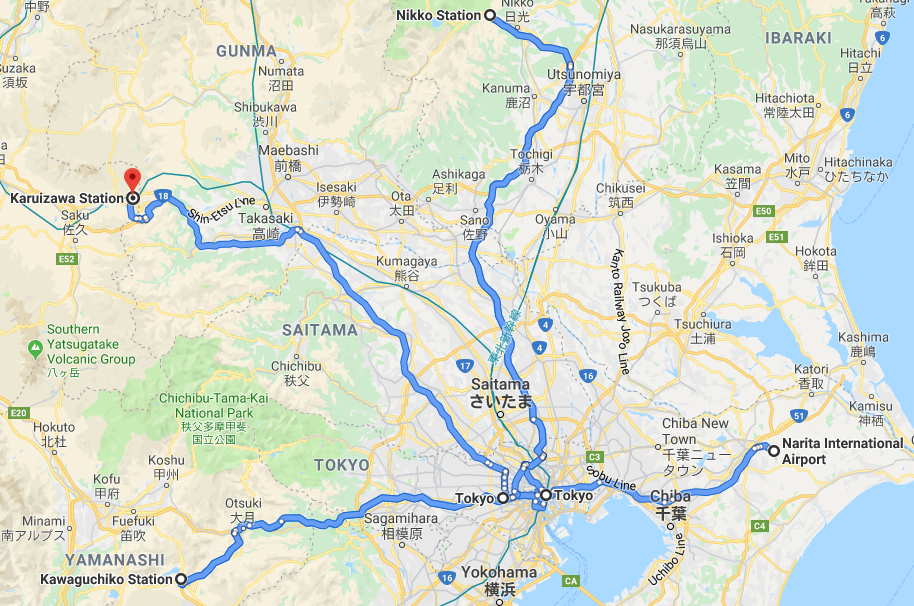 Transport : Train – JR East Pass + various day pass on respective area
