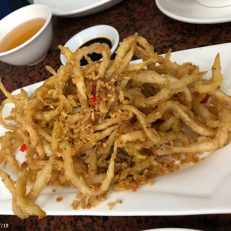 We happened to pass by this restaurant with many photos at the entrance. The boss is personally there and introduces us to their famous dishes. We ordered their specialty shrimp noodles and fried white fish with salt and pepper. Both are fantastic.