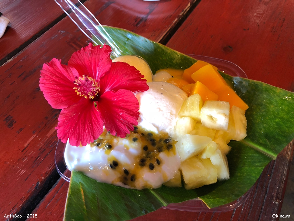 Lunch at the rest stop, Onna Station Nakayukui Market, the tropical snow ice is one of the most popular desserts among the tourists and locals.