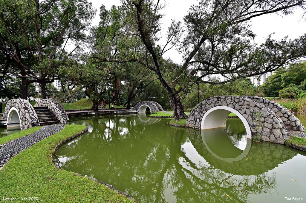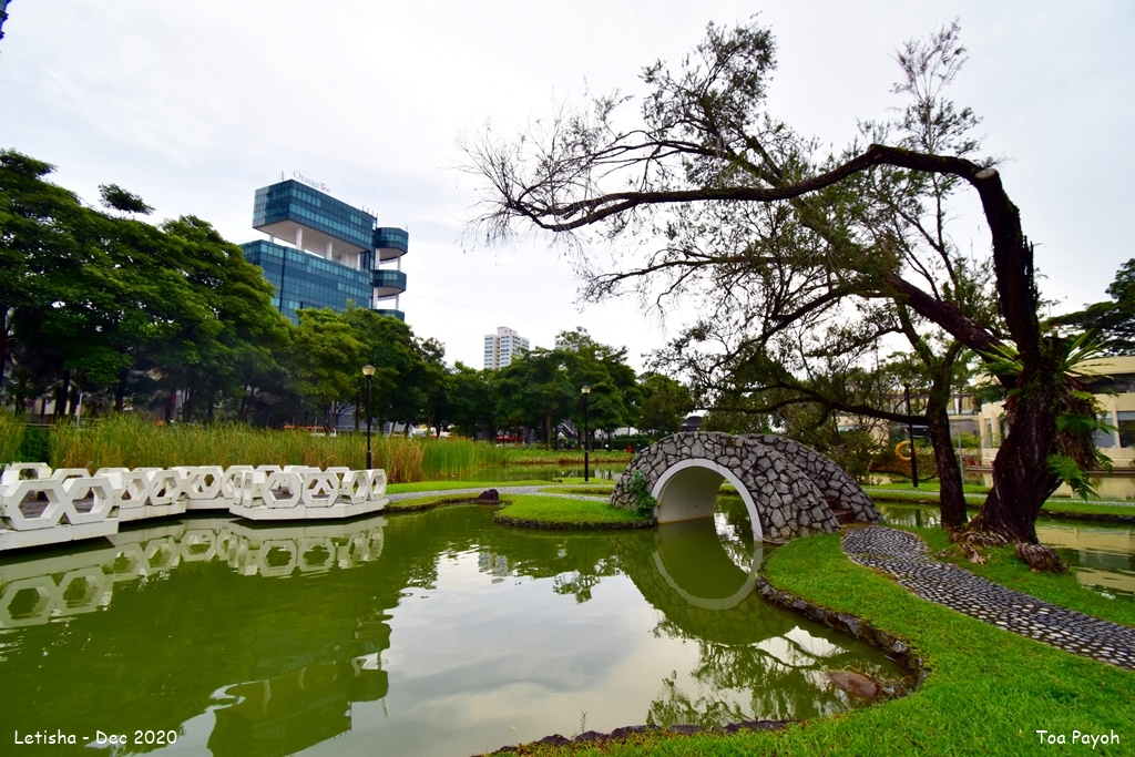 Toa Payoh Town Park is a green space where residents go for exercises with a natural backdrop. The park retains its old charm and beauty with its landscaped pond, stone bridges, hexagon motif, and willowing trees. The once a glory 25meter tall Observation Tower offered visitors panoramic views in the 1970s and 1980s. Today, the tower is closed till further notice.
