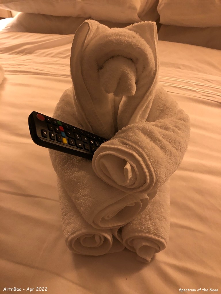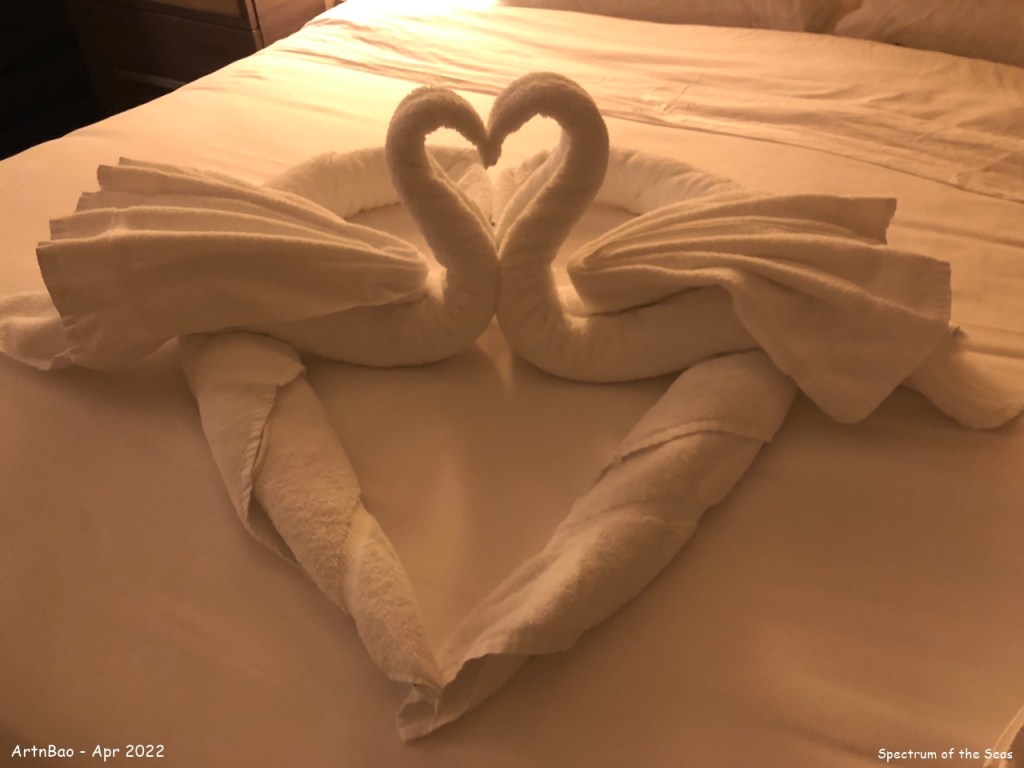 After dinner, as you head back to the room, one will be greeted by an animal (towel origami) each day.