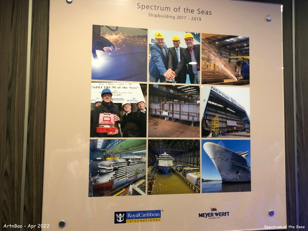 The Spectrum of the Seas floated out of the shipyard in February 2019 in Papenburg, Germany. In April 2019, she started her maiden voyage from Barcelona to Asia. After two sailing in Singapore, it departed to her homeport in Shanghai, China. The ship is designed-built for the Asian market and is the first Quantum-Ultra class ship.