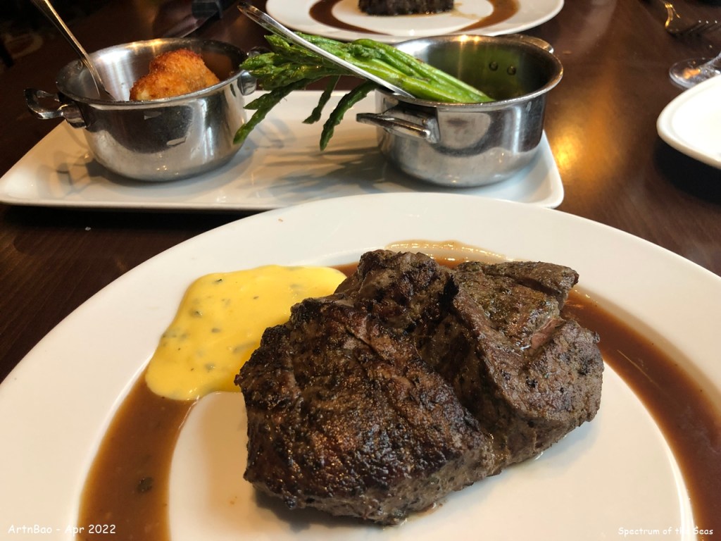 We have our lunch at this steakhouse. One of the best steaks we had onboard, grilled to perfection. The flavourful steak is definitely worth our extra dollar.
