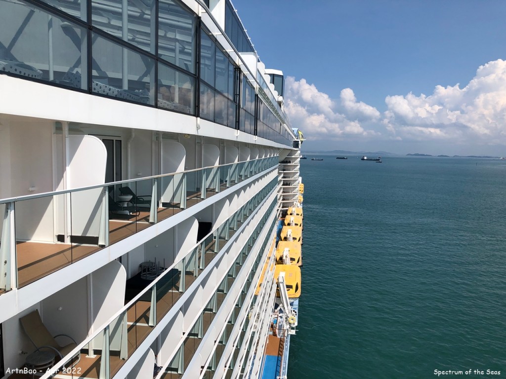 Arrive at the Marina Bay Cruise Center at the selected arrival time. Staff will guide you through the whole immigration procedure. Once onboard the Spectrum, you may not be able to make any local call unless you have bought their WIFI services. The first stop on board is the Muster station for the safety briefing.