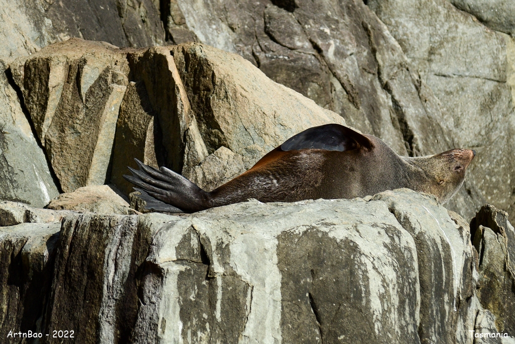 Today we were going for an adventurous Tasman Island Cruise, a 3 hours speed boat tour by Pennicott Wilderness Journeys. With the red oversized waterproof jumpsuit, we took the coach to Pirates Bay for boarding. Once on board the custom-built boat, everyone is seated with seat belts fastened for safety reasons. As the sea may get rough, the tour guide provides everyone with ginger pills to prevent sea sickness.