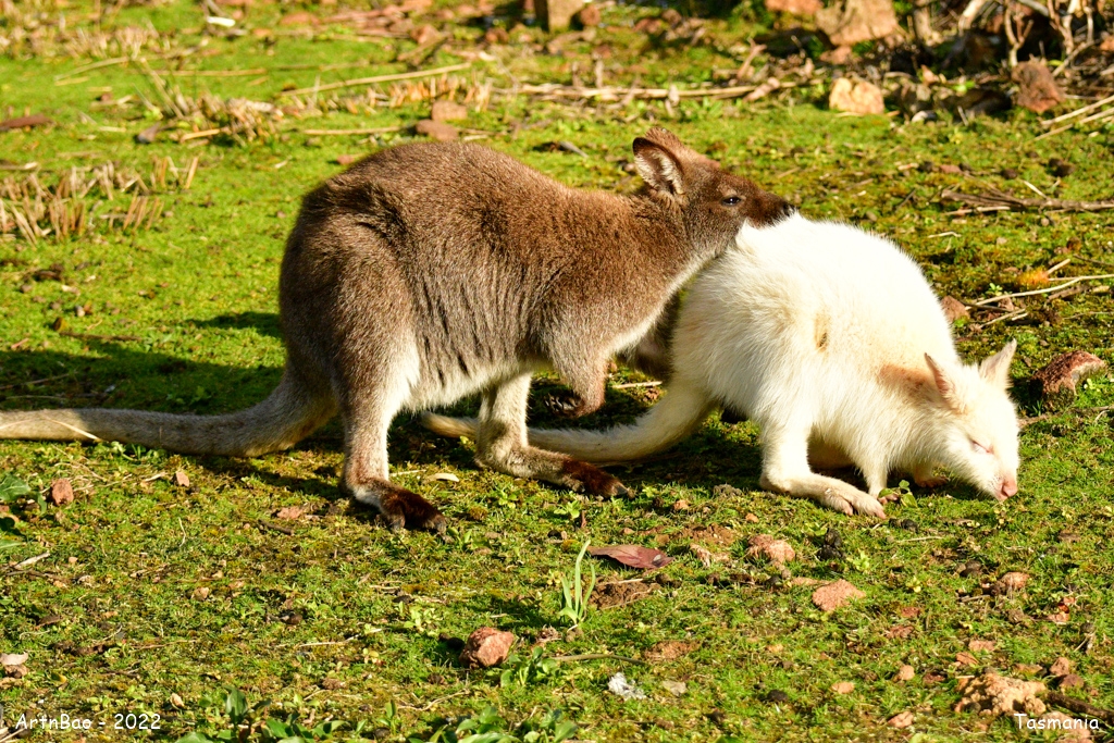 Bruny Island had an abundance of wildlife, including the only wild white wallabies population. From late afternoon, head to Adventure Bay and Grass Point to look for them. We spotted quite a few white and tens of wallabies around the residential area towards Grass Point.