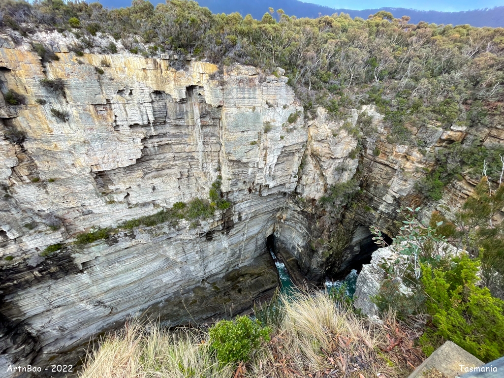 Like Tasmans Arch, Devils Kitchen started as a sea cave millions of years ago. Over years of wave crashing, the cave was lengthened and widened. When the entire cave roof collapsed, it resulted in its current formation.