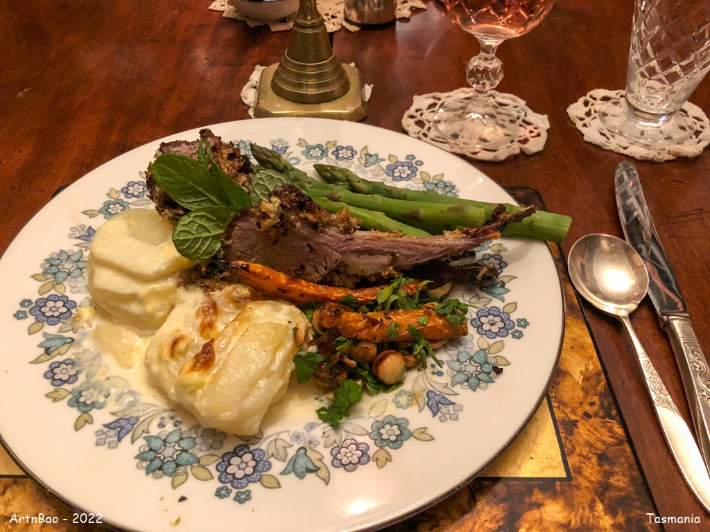 With Chief Richard and friendly Cally, we had dinner in the Georgian dining room with a beautiful table setup. The meat is juicy, soft, and tender. A tasty and yummy dinner, the best we had so far in Tasmania.