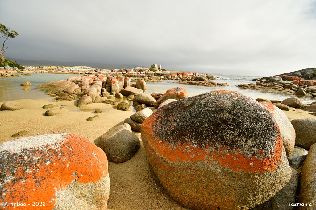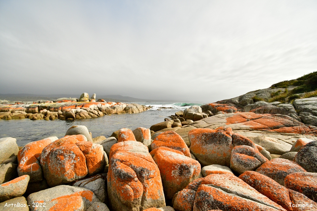 Bay of Fires, located on the Northeast coast of Tasmania, is one of the most unique and beautiful spots. The rich and striking orange rocks scattered the coastline and stood out with the turquoise water. From Binalong Bay to Eddystone Point, you can find different picturesque rock formations with various orange saturation.