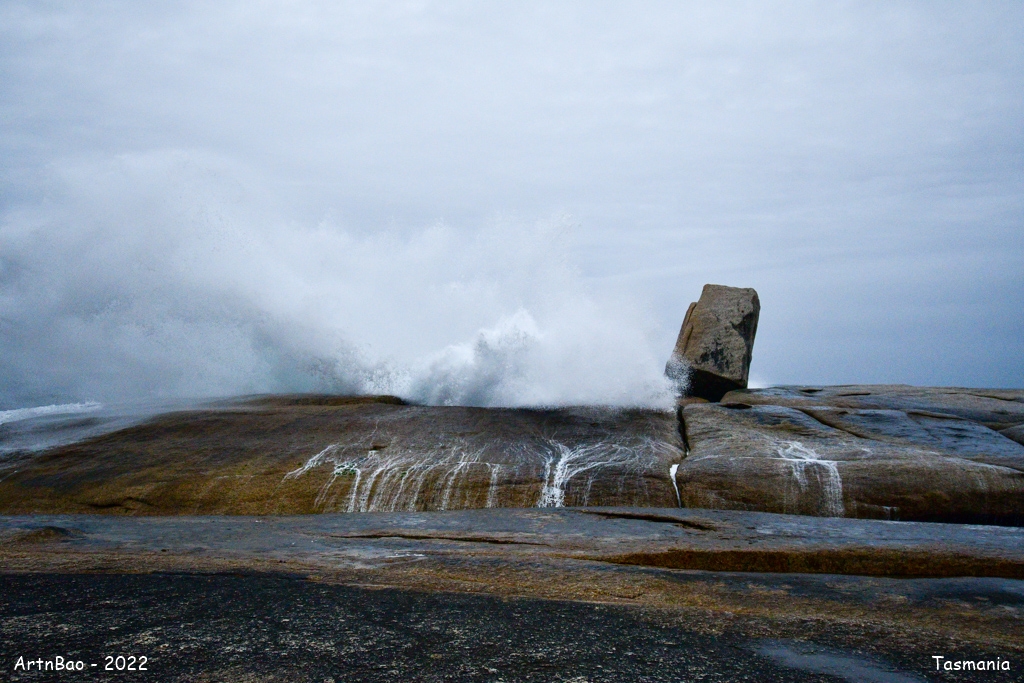 Back to Bicheno town for its famous Bicheno Blowhole. With each surge of ocean, it will burst through the hole with changing force. Every blow is of different strength. We are lucky enough to witness an enormous blow. As the area is without any fence, walk with care.