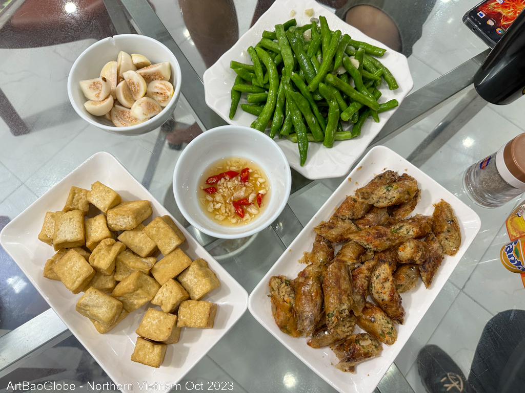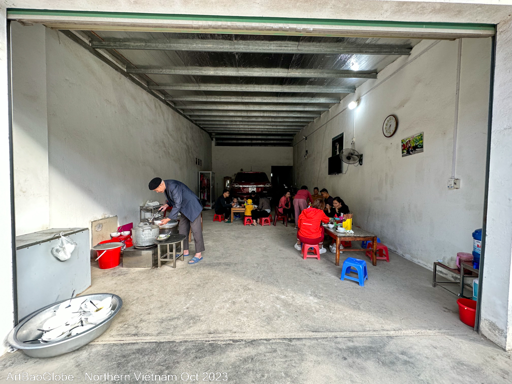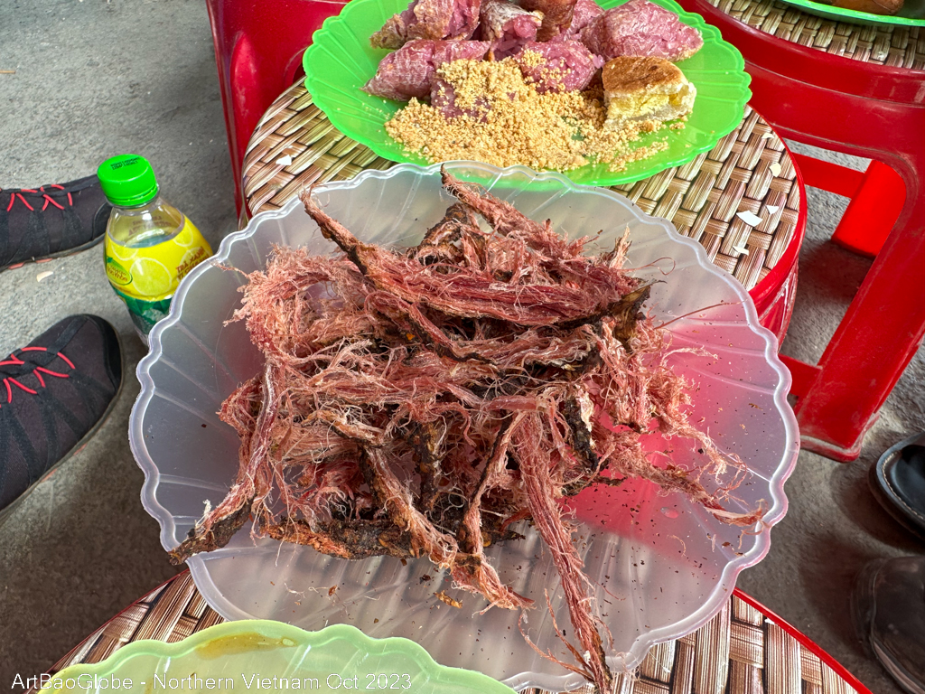 One of the most common breakfasts in Ha Giang is Bánh cuốn, a rice roll filled with minced meat and or diced mushrooms. Together with the broth, every mouthful is delicious. We had a simple and enjoyable local breakfast.