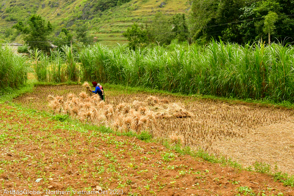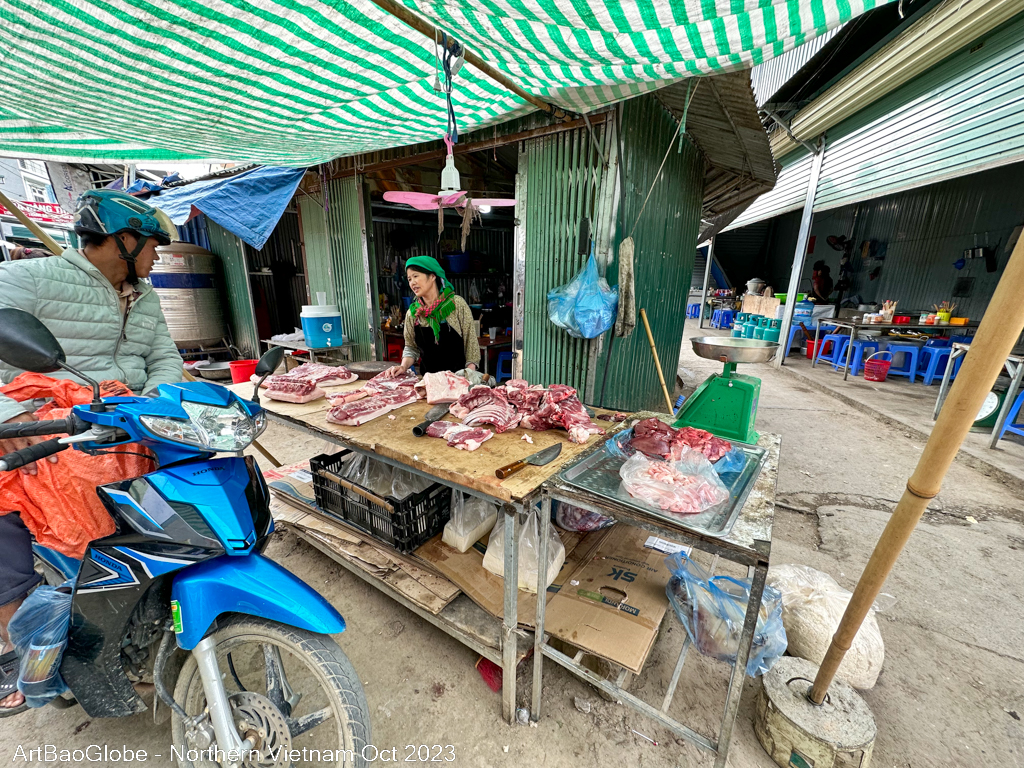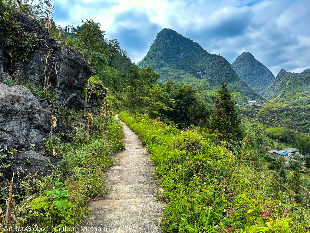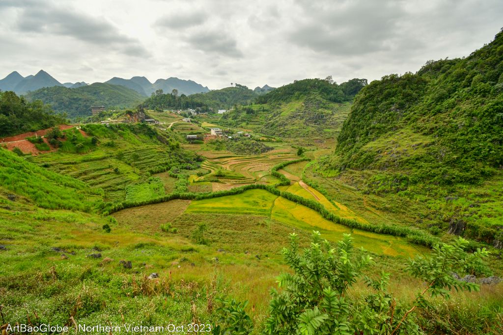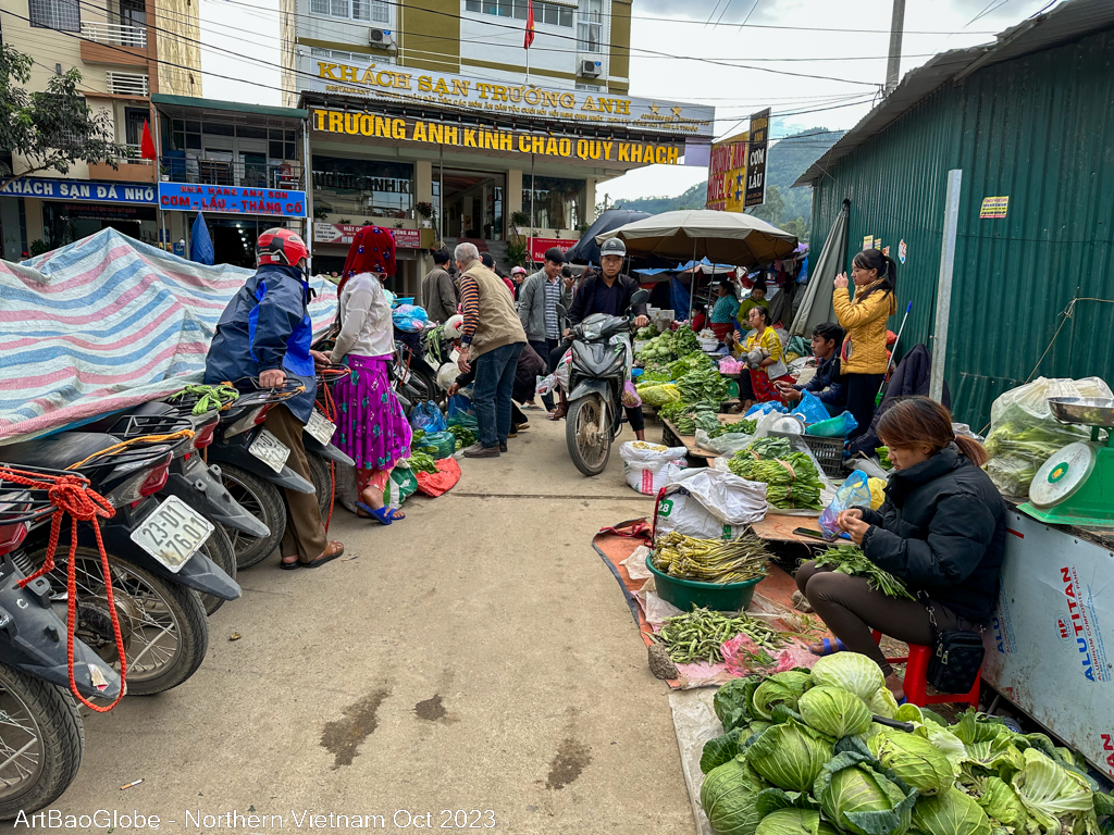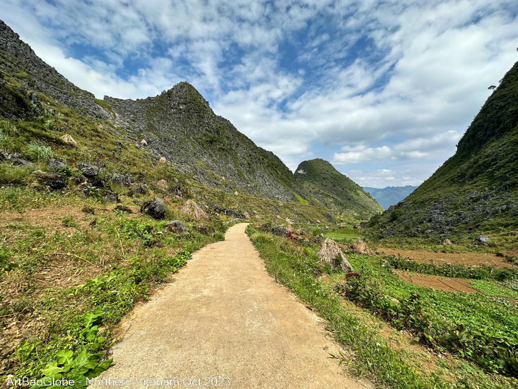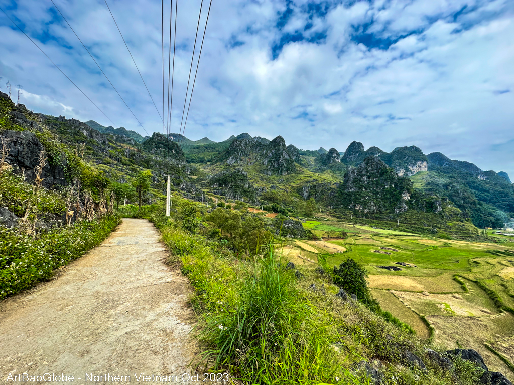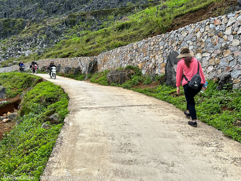 We hiked at the nearby trail. The landscape was extra stunning. Most villagers were at the paddy field to harvest. We are lucky to witness a group of villagers harvesting their crops. Along the route, villagers on motorbikes would ride past us. Most kids are in school. We were the only one along the path. Enjoy the peacefulness with the astonishing sight. After 5km of hike, the main street of Dong Van town appeared from afar.