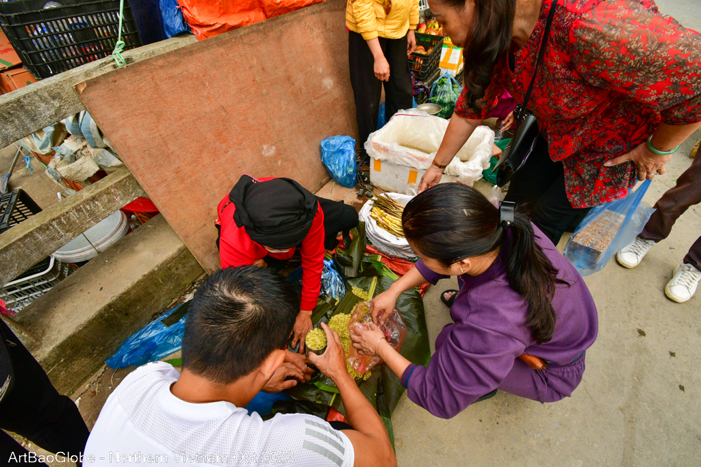 At the old town square, we enjoyed our hot coffee, tea, and the fresh cốm bought from the market.