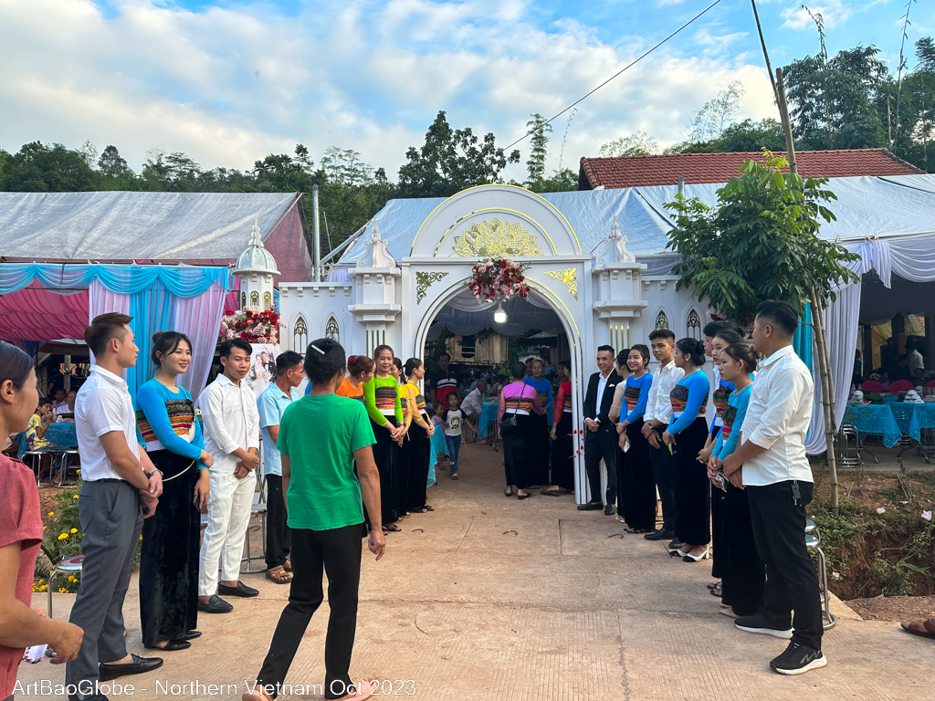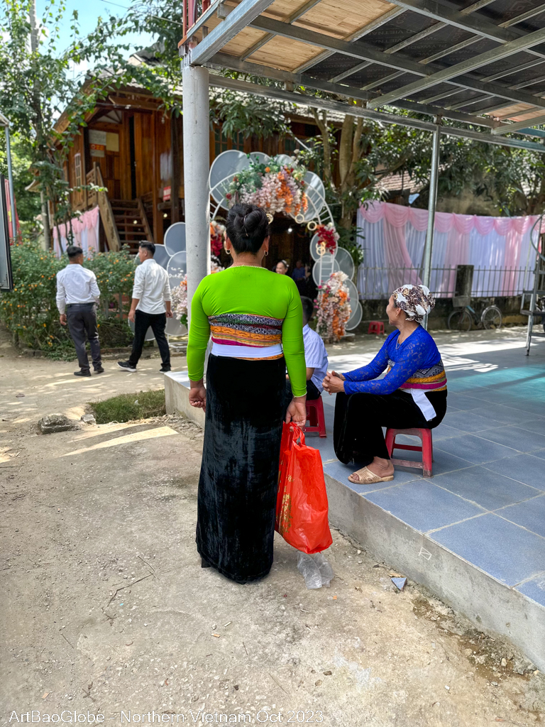 As we trekked across the main street, we noticed that the villagers were all dressed up and heading in the same direction as us. It seemed like there was an event going on. The guide noticed that there was a wedding banquet right opposite the homestay. The host informed us that the newlywed was his nephew. (Is the same group of wedding we met before lunch)