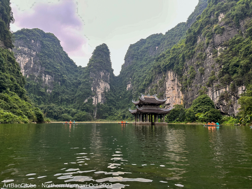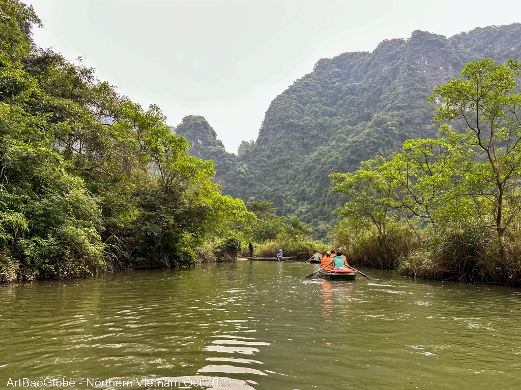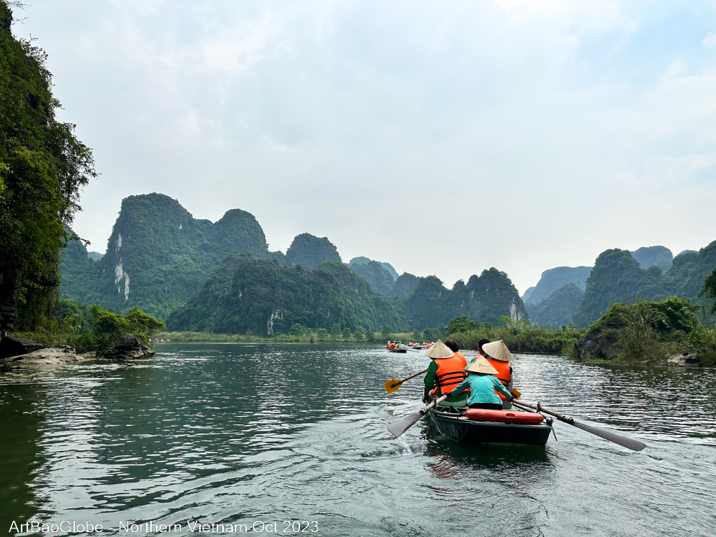 Trang An boat trip is one of the highlights of the tour. Known as Halong Bay on land, Trang An is famous for its scenic waterway with limestone mountains and caves. The area is a World Heritage UNESCO protected site.