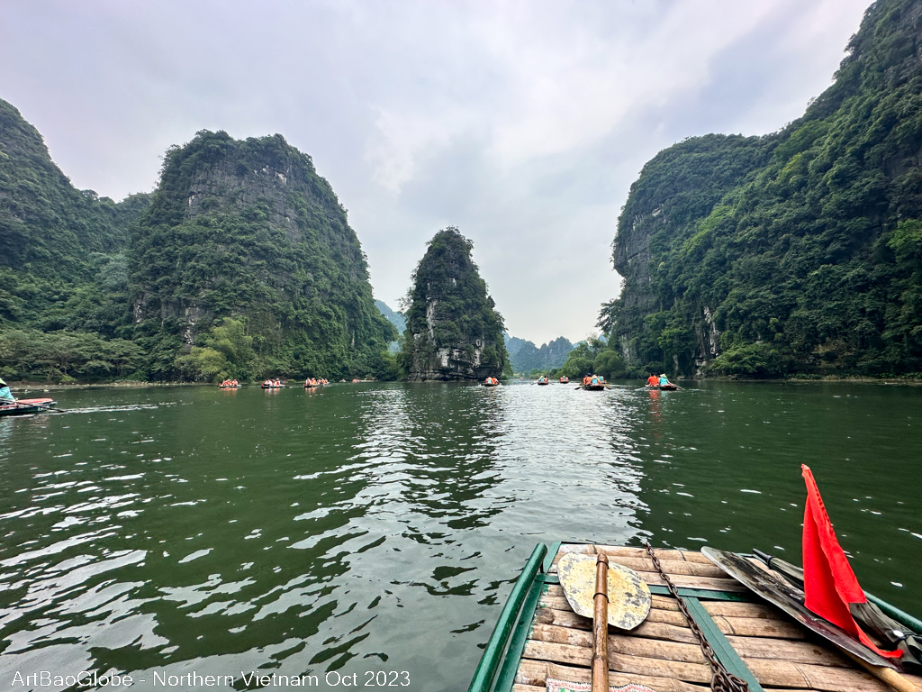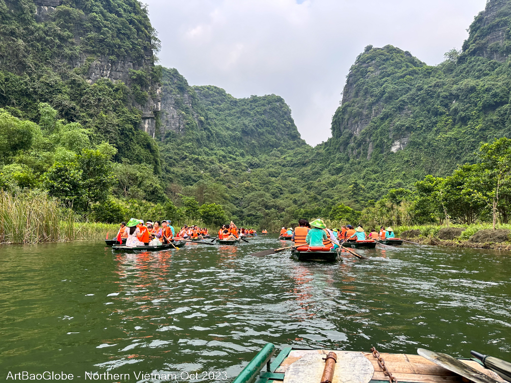Before boarding the boat at Trang An pier, we must select the route for the journey. One of the most unique attractions along the river is Dot Cave, which is one kilometer long. Thus, choosing route #3 is a must. The route includes the movie set of King Kong movie, two other caves, and three temples.