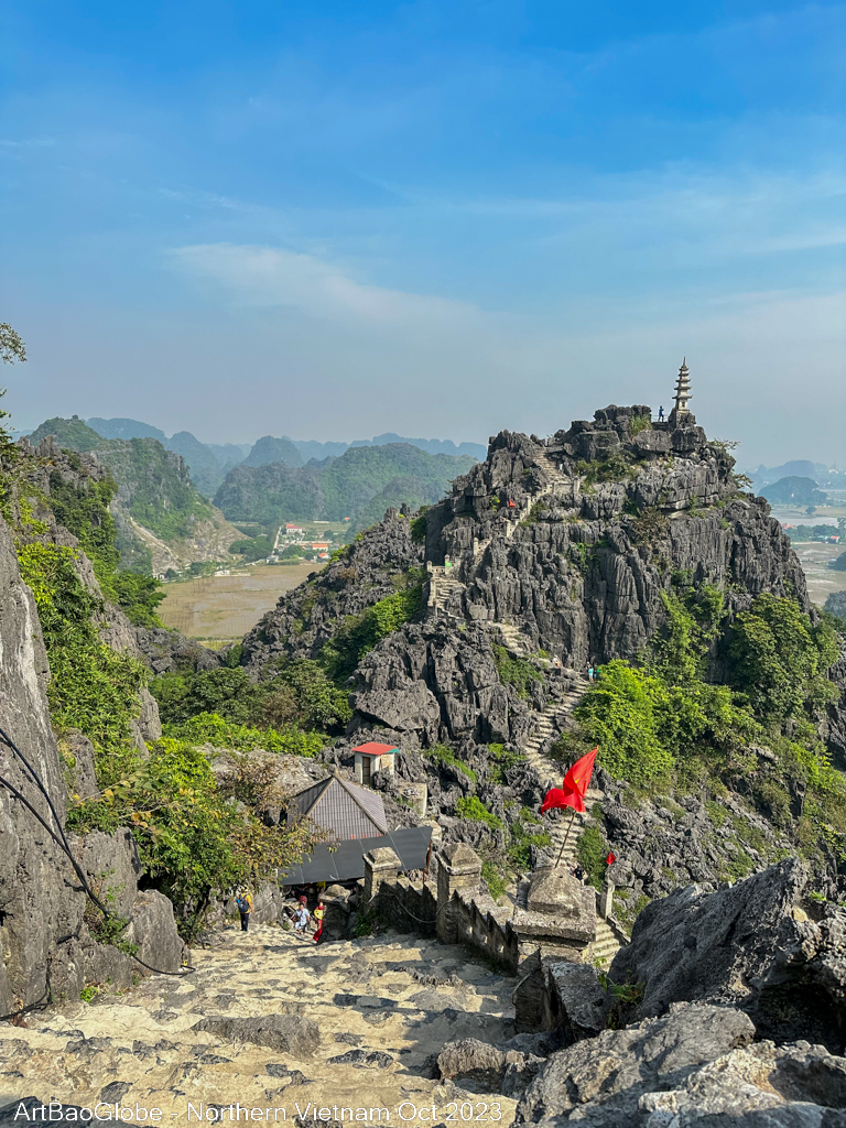 The viewpoint above the Hang Mua or Dancing Cave is one of the main attractions in Ninh Binh. It required a climb of 500 steps or 88 meters up to its peak. It was not an easy task as the steps were narrow and uneven. But you will be rewarded with a stunning 360-degree panoramic view.