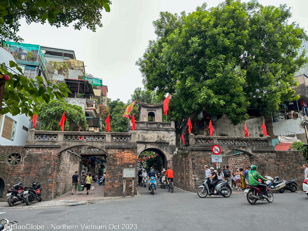 O Quan Chuong, the old east gate, is the only gate that has remained since the 11th century. The building is made of stones and bricks with a feature roof.