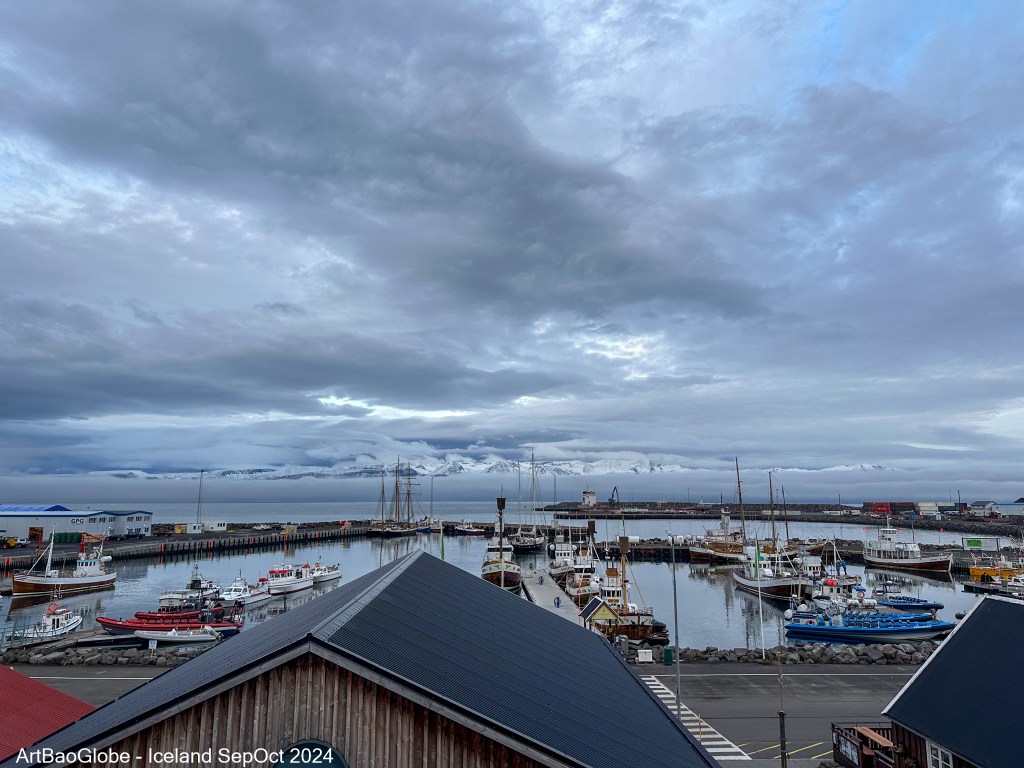 At the harbor, snowcapped mountains peeked through the drifting clouds, painting a breathtaking panorama. The mesmerizing landscape provided a picture-perfect backdrop as we strolled toward the office to check in for our eagerly awaited whale-watching cruise.