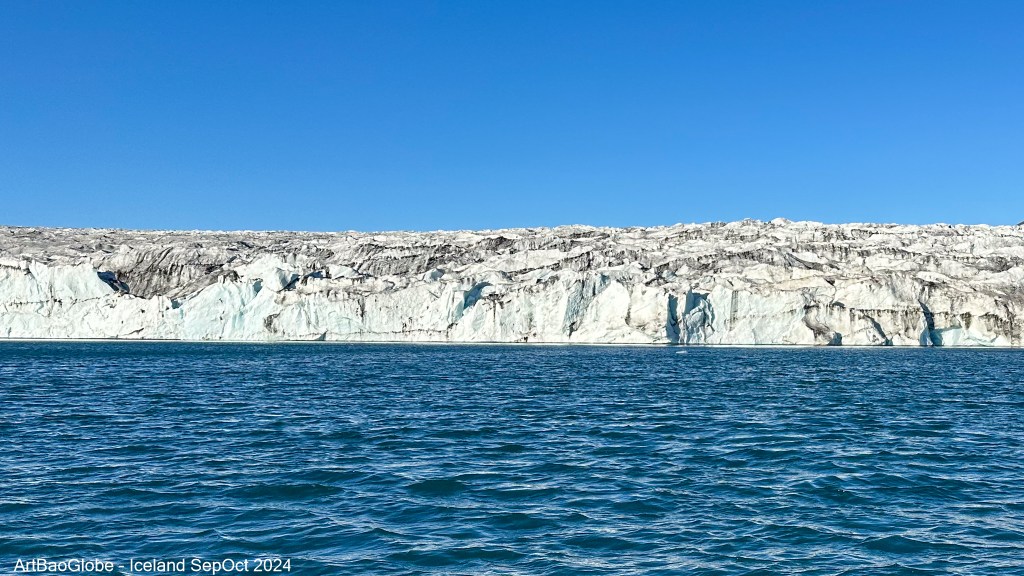 In the afternoon, we embarked on another incredible experience : the Jökulsárlón Glacier Lagoon Zodiac Tour with Arctic Adventures. We met up at the tour truck, where we geared up in red flotation suits for safety and warmth before boarding a super jeep bus that took us to the dock. Unlike larger boat tours, the small group Zodiac cruise allowed us to venture deeper into the lagoon, bringing us closer to the glacier wall of Breiðamerkurjökull and the serene, icy waters of Jökulsárlón. As we cruised near giant floating icebergs, we marveled at their stunning colors from pure white and vibrant blue to streaks of gray, formed by volcanic ash residue from past eruptions. Knowing that these ice formations have been shaped over thousands of years, slowly drifting through the lagoon, made the experience even more surreal. Getting up close to these breathtaking icebergs and the towering glacier wall was truly a memorable and humbling encounter with Iceland raw natural beauty.