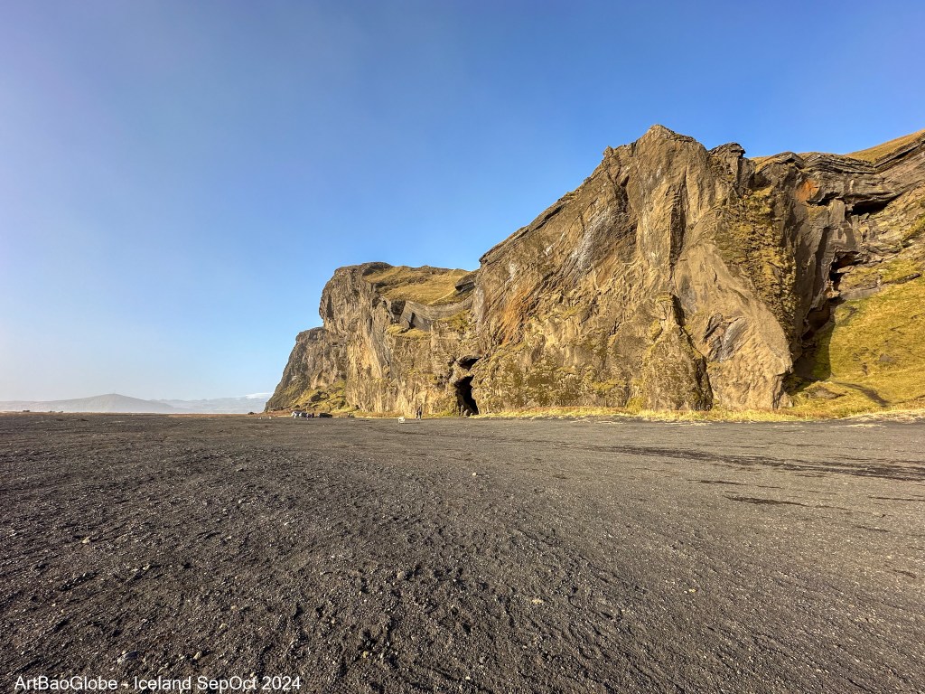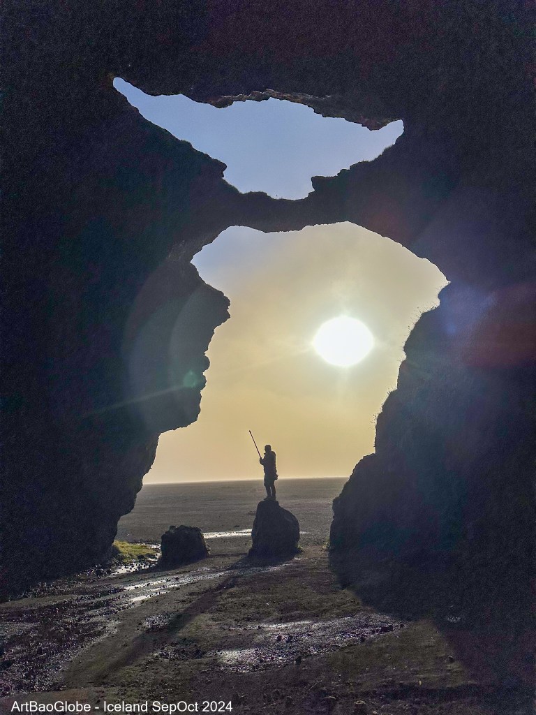 Another fascinating stop in Viking Park is Gígjagjá Cave, more popularly known as Yoda Cave due to the unique shape of its entrance, which resembles the silhouette of Yoda from the Star Wars series. Stepping inside the cave and looking back out through the entrance, the resemblance becomes even more striking. Facing the sea, the cave is set against the vast black sand beach, where strong winds can be relentless. At times, the wind sweeps across the landscape with such force that it lifts fine grains of sand into the air, stinging our faces, a sensation that truly feels like an experience unique to Iceland. Even while sitting inside the car, we could hear the sand pelting against the vehicle, carried by the powerful gusts. Since Gígjagjá is still relatively unknown, it remains a quiet and uncrowded spot, adding to the raw, untouched beauty of the place. After exploring the cave, we took a walk along the black sand beach, immersing ourselves in the wild and untamed nature of Iceland but with extra caution, as the unpredictable winds and rough conditions demand respect.