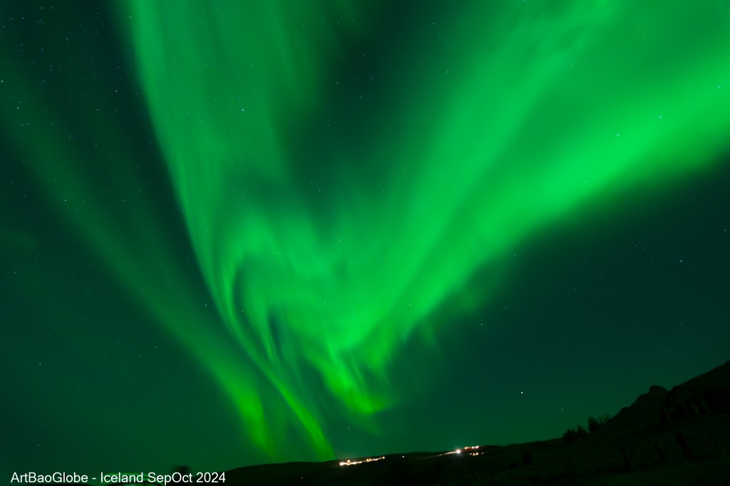 From some Facebook posts, it seemed like we had a good chance to witness the northern lights again tonight. At the hotel car park, we could see the clouds shifting in, threatening to block our view of the northern lights. Not wanting to miss the chance, we decided to drive out in search of clearer skies. Based on recommendations from Facebook posts, we headed toward Dyrhólaey Lighthouse, known as one of the best northern lights viewing spots near Vik. Not long into our drive, I peeked out from the car window and there it was. The aurora had already begun to fill the sky. Before we even reached our destination, we made an impromptu stop at a roadside rest area, and what we witnessed was beyond words. The northern lights were stronger, brighter, and more expansive than anything we had seen before, dancing across the sky in mesmerizing waves. It was a jaw-dropping, eye-opening spectacle, and we were so grateful we had stopped right there instead of driving further. This was, without a doubt, one of the most unforgettable aurora displays of our trip.