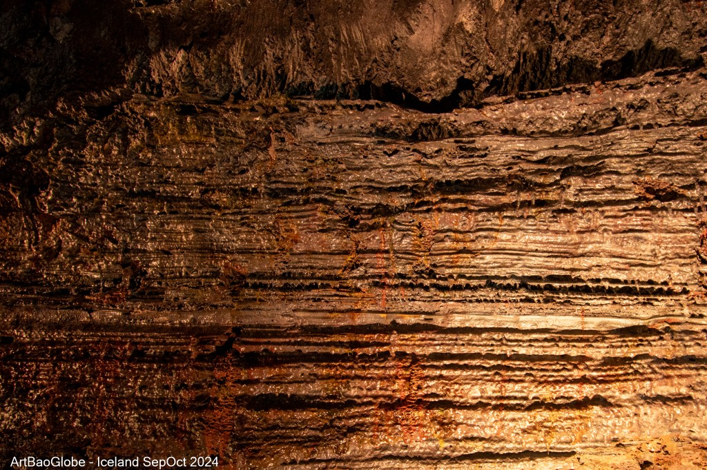 Inside, the walls were lined with extraordinary rock formations sculpted by ancient lava flows. Each twist and ripple told a story of the fiery river that once surged through this space. Some sections still bore swirling textures and molten patterns, etched into the stone like nature own artwork. In parts of the cave, the walls glistened with a glassy sheen, remnants of lava that had cooled so rapidly it left behind a smooth, polished surface, hauntingly beautiful and like nothing we had ever seen before.