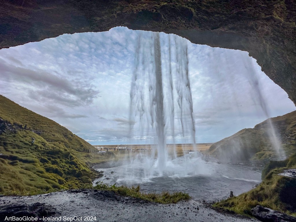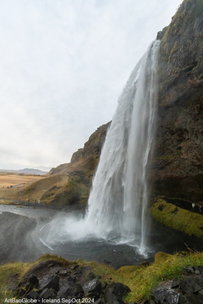 Seljalandsfoss is one of the most breathtaking waterfalls along Iceland South Coast and one of its most iconic. Fed by the Seljalandsá River, it plunges dramatically over a 60m high cliff, creating a stunning curtain of water that mesmerizes all who visit. What sets Seljalandsfoss apart is the wide cavern tucked behind the falls, allowing visitors to walk a full circle around the waterfall. This rare and exhilarating experience offers a unique perspective from behind the cascading water. Just be prepared to get a little damp from the mist, and watch your step as the trail can be quite slippery. When we visited, a thin layer of ice had formed along the path, making each step a cautious one.