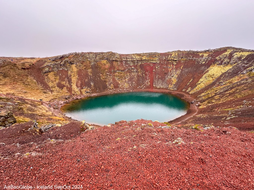 At the bottom lies a stunning aqua-blue lake, its vibrant hue enhanced by minerals in the surrounding soil and rock. A walking path winds around the crater rim, offering breathtaking panoramic views into the heart of this volcanic marvel. For those who want a closer look, a trail also leads down to the lake edge, where the colorful terrain and tranquil waters create an almost otherworldly scene. The chance to witness and explore volcanic craters like Kerið is something truly special. It’s difficult to put into words the feeling of standing inside a collapsed volcano. A surreal and humbling experience that left us in awe of Iceland raw and powerful natural beauty.