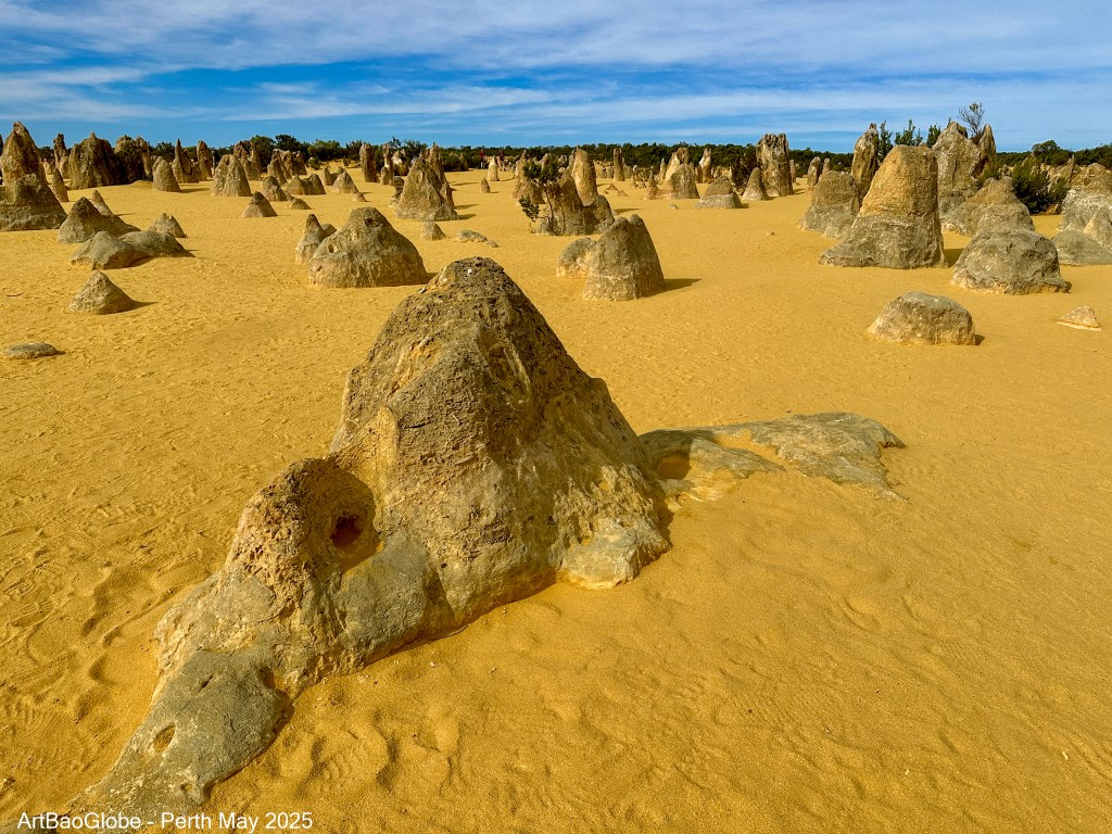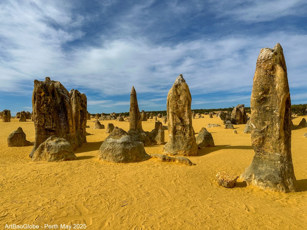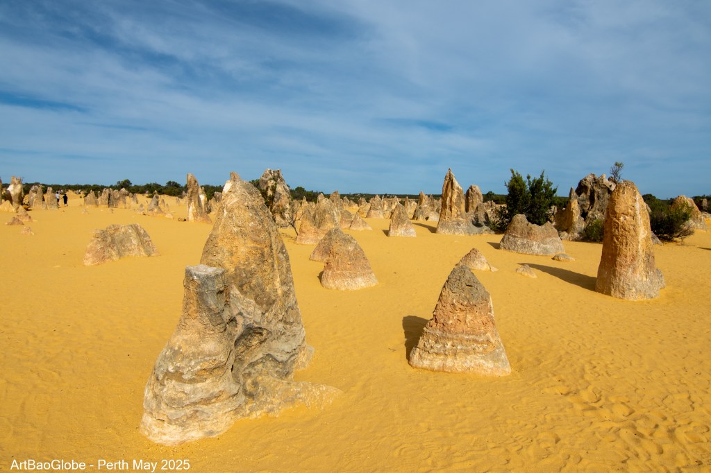 Located within Nambung National Park, the Pinnacles Desert is one of Western Australia most captivating natural wonders. Famous for its striking, almost otherworldly landscape, the limestone formations here are believed to be around 25,000 to 30,000 years old. The Pinnacles were formed after the sea receded, leaving behind deposits of seashells. Over time, coastal winds slowly eroded the surrounding sand, gradually revealing these limestone pillars. No two formations are alike, each one uniquely shaped by nature and time. The columns vary in height and form, with some rising up to 3.5m. You can explore the desert via a 4.5km scenic drive loop with several lookout points, or take the 1.2km walking trail for a more immersive experience. Walk among the Pinnacles, notice the intricate textures, shifting shadows, and a quiet stillness that invites you to slow down and appreciate how patiently nature crafts its masterpieces over thousands of years. With minimal light pollution, the Pinnacles Desert also transforms into an incredible stargazing spot after dark. As night falls, the ancient limestone pillars stand silhouetted beneath a vast, star filled sky making the landscape feel just as magical, if not more, under the stars.